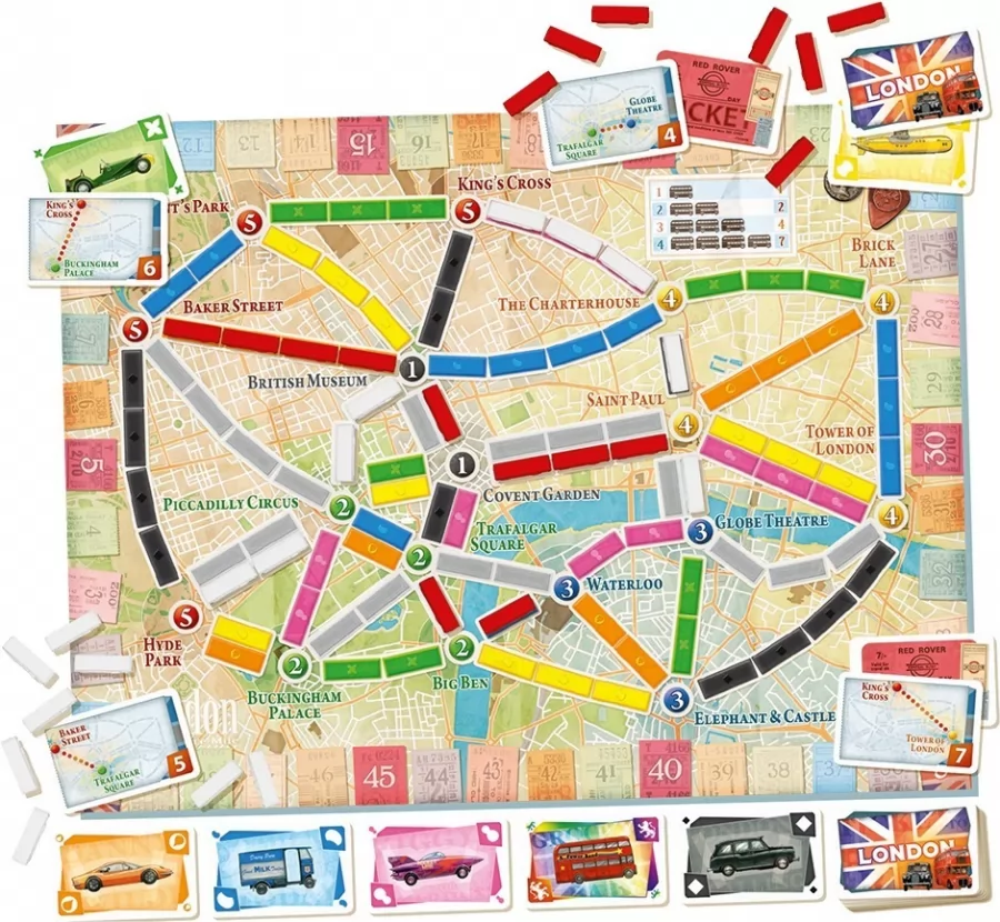 Presentamos la Colección de Mapas de ¡Aventureros al Tren!, una nueva serie de expansiones para este juego que incluyen dos mapas diferentes en un solo tablero de doble cara. ¡Aventureros al Tren! Asia es el primer volumen de esta línea, y ha sido diseñado para partidas de hasta 6 jugadores, en las que un compañero y tú competiréis contra otros equipos en un salvaje recorrido de 25.000 Km. desde Kabul hasta Pekín, a través de las estepas de Mongolia y el desierto del Gobi, hasta el río Amarillo. O, si prefieres los sosegados placeres del viaje en solitario a lo largo de la Ruta de la Seda, o encontrar tu camino en el bullicio de Indochina, aventúrate en la Asia Legendaria… pero prepárate para un aterrador itinerario a través de los pasos montañosos del Himalaya. Además de los 2 mapas, los Billetes de Destino y el libro de reglas, ¡Aventureros al Tren! Asia también incluye 6 atriles de madera para las cartas, así como 45 vagones de tren en miniatura (9 de cada uno de los 5 colores habituales), necesarios para el juego en equipo.