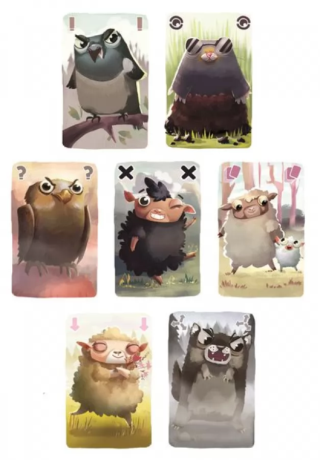 Los jugadores roban cartas de las manos de otros jugadores, sin mirar, para conseguir tríos de animales. Arriesgarse puede hacer que lo consigas antes, pero si coges a la oveja negra, di adiós…