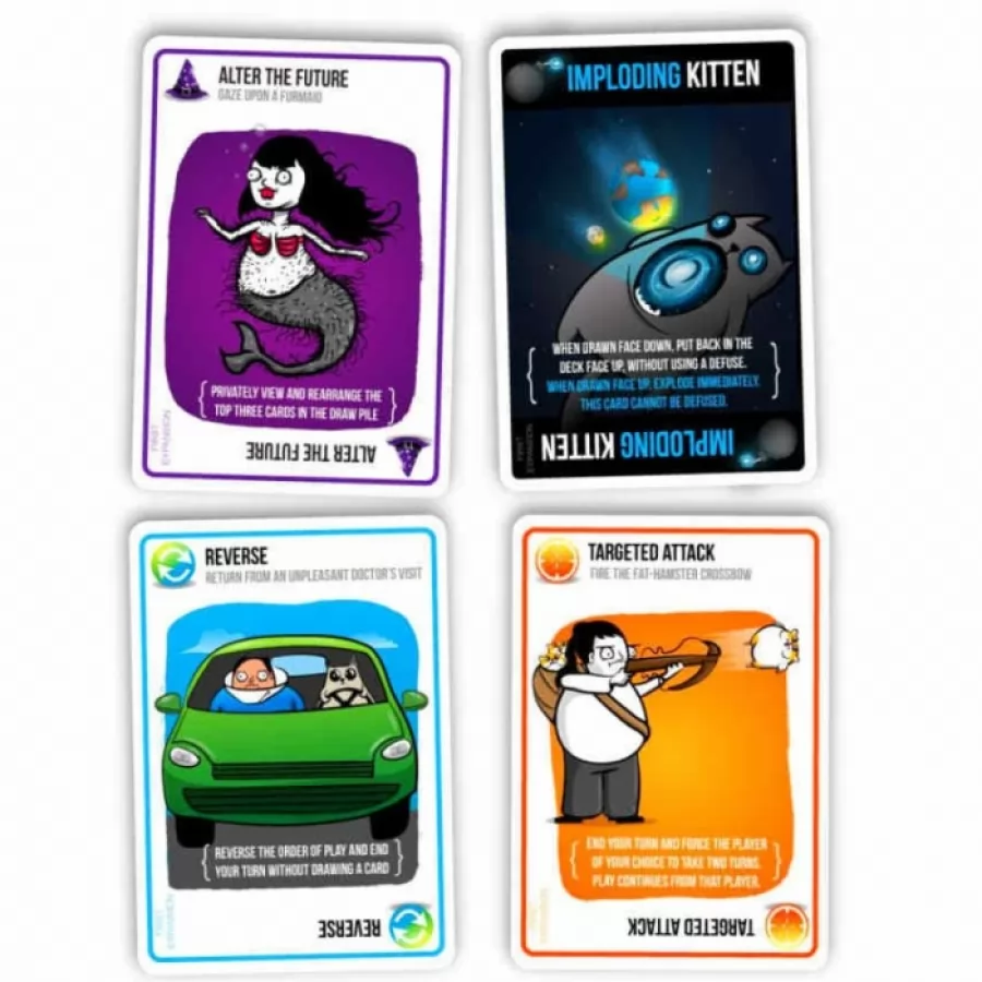 ¡Esta es la primera expansión de Exploding Kittens! Incluye 20 cartas nuevas ilustradas por The Oatmeal, expande el mazo inicial de 5 a 6 jugadores, e Incluye un “cono de la vergüenza” de tamaño real que indica el orden de turno.