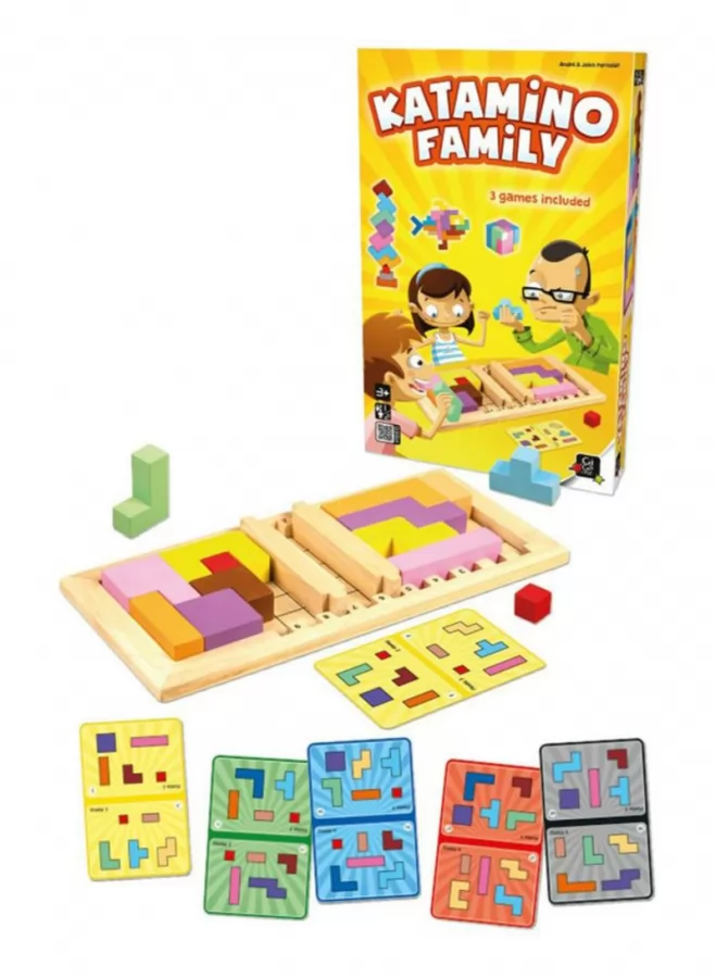 Katamino Family es la edición más reciente de la línea Katamino. Presenta la jugabilidad para 2 jugadores desarrollada en nuestros productos Winomino y Katamino Duo, una guía de actividades llena de rompecabezas y actividades para niños (desde los 3 años) y tarjetas de juego especiales para 2 jugadores que tienen un lado fácil y difícil permitiendo que dos jugadores con diferentes niveles de edad / habilidad compitan en enfrentamientos cara a cara con una desventaja leve para el jugador más fuerte.