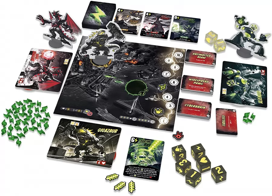 King Of Tokyo: Edición Oscura es un juego de 2 a 6 jugadores que representan a gigantescos monstruos dispuestos a lo que haga falta para conquistar Tokyo. Lanza los dados, compra cartas de poder, incrementa tu brutalidad, haz pedazos lo que se ponga por delante para conseguir puntos de victor