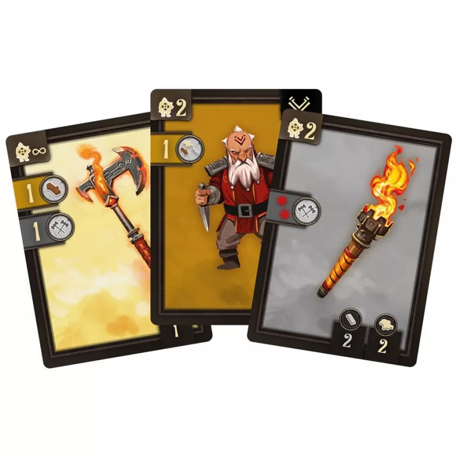 Desde tiempos inmemoriales, las minas de Runedar han abastecido de oro a varias generaciones de enanos. Hoy en día, solo quedan un puñado de ellos custodiando la fortaleza que rodea la entrada a la vieja mina ya agotada... o eso se creía. Este grupo de enanos ha tenido la fortuna de dar, por accidente, con una nueva veta del más puro oro y han conseguido extraer un pequeño tesoro. Desgraciadamente, justo cuando estaban dispuestos a partir para ponerlo a salvo en el bastión más cercano, se han encontrado con que la vieja fortaleza de Runedar está rodeada por orcos dispuestos a todo por hacerse con el preciado metal. Además de defender la fortaleza, los enanos deberán cavar un túnel bajo la montaña que les permita escapar y poner a salvo el oro que tanto esfuerzo les ha costado conseguir. The Siege of Runedar es un juego cooperativo de 1 a 4 jugadores. Los jugadores se pondrán en la piel de los enanos encargados de defender los muros de Runedar y el tesoro que guardan. Deberán enfrentarse a orcos, goblins y troles, peleando cuerpo a cuerpo contra los que consigan sortear los muros y disparando a distancia a los que pretenden entrar. Mediante un sistema de construcción de mazos podrán mejorar las armas y herramientas de las que disponen, ya que deben mantener a raya a los asaltantes el tiempo necesario para construir un túnel por el que escapar al terrible asedio al que les han sometido y poner a salvo el tesoro. CONTENIDO Un inserto en 3D (fortaleza), un tablero, 138 cartas, 22 figuras de cartón con peana, 12 losetas de fortaleza, 29 fichas varias, 62 recursos personalizados, 15 piezas de madera, 5 dados personalizados, una hoja de adhesivos, una hoja de montaje, una hoja de Crónicas, un reglamento.