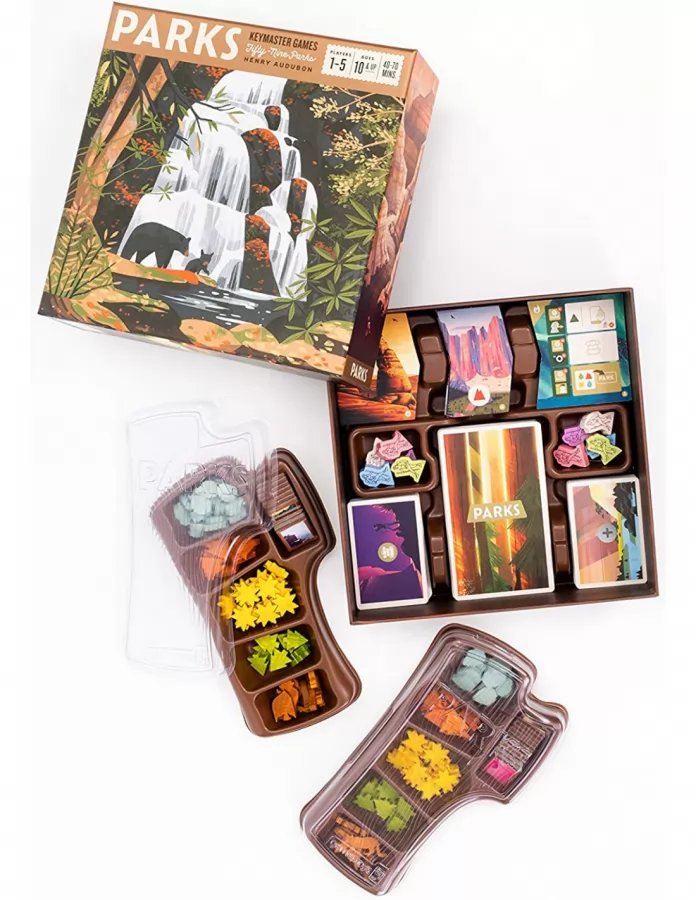 Parks es un juego de corte familiar en el que las personas representan a excursionistas que visitarán distintos parques nacionales. A lo largo de cuatro rondas, cada persona gestionará dos peones que se desplazarán sobre un track de casillas.