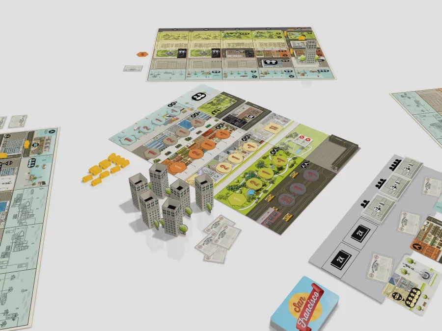 La primera mitad del siglo XX es para San Francisco una época de intenso desarrollo y nuevas oportunidades. También es una oportunidad para que tú, como urbanista, participes en el concurso para elegir el plan de reconstrucción más impresionante de la ciudad. Siéntate, abre tu cuaderno de bocetos, ¡y crea ese proyecto que te hará destacar! Esboza una hermosa ciudad en este juego ideado por el famoso diseñador de juegos de mesa Reiner Knizia.
