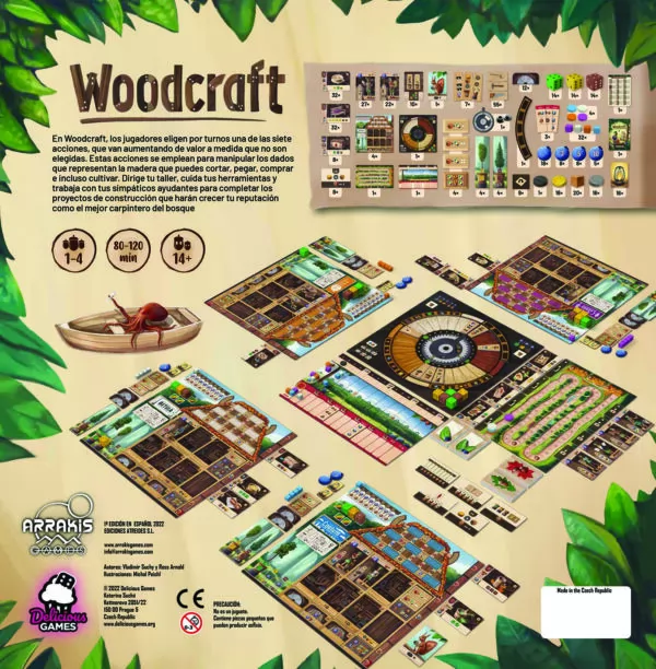 En Woodcraft, los jugadores eligen por turnos una de las siete acciones, que van aumentando de valor a medida que no son elegidas. Estas acciones se emplean para manipular los dados que representan la madera que puedes cortar, pegar, comprar e incluso cultivar. Dirige tu taller, cuida tus herramientas y trabaja con tus simpáticos ayudantes para completar los proyectos de construcción que harán crecer tu reputación como el mejor carpintero del bosque