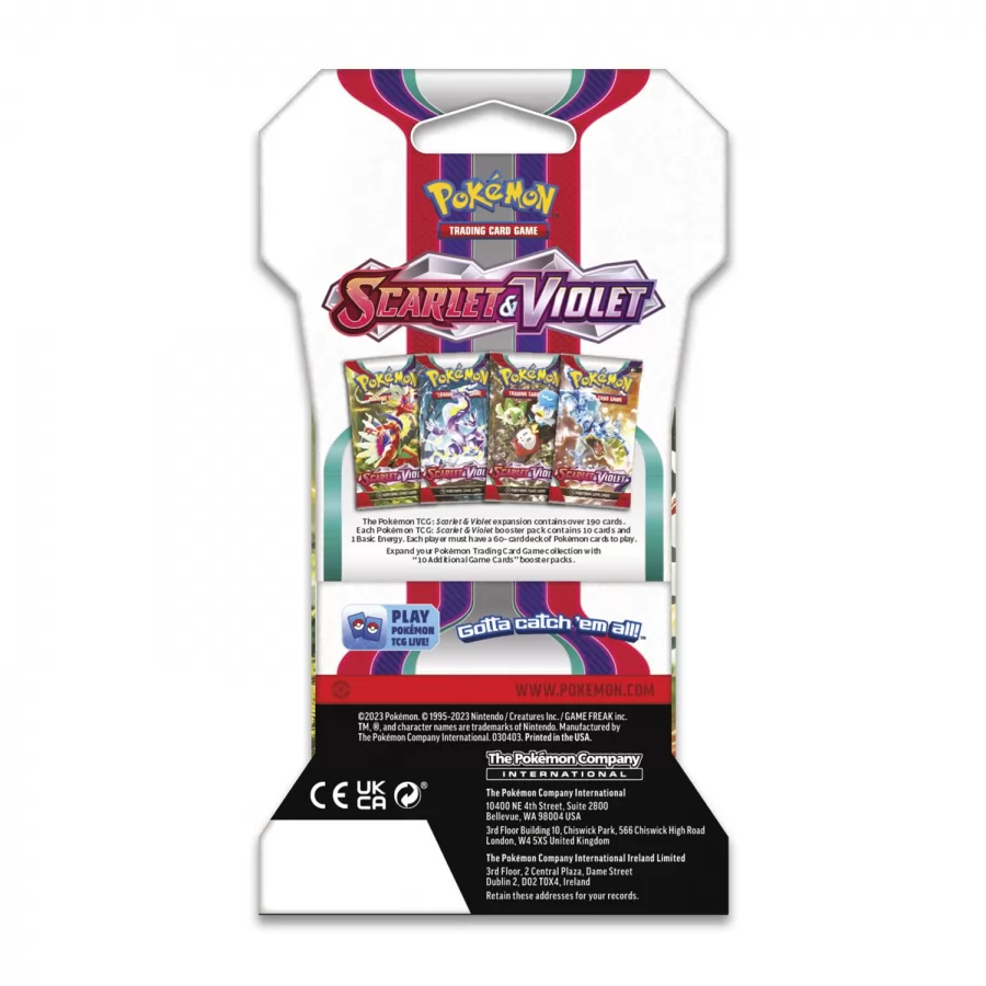 !Embárcate en un viaje por la región de Paldea! Conoce a los primeros compañeros Sprigatito, Fuecoco y Quaxly, y explora el poder de los Pokémon legendarios Koraidon y Miraidon como Pokémon ex. Además, otros Pokémon ex evolucionan para entrar en combate, como Arcanine y Gyarados con una nueva apariencia deslumbrante. Y llegan todavía más Pokémon en cartas con ilustraciones impresionantes de una rareza única. ¡Descúbrelos a todos en la expansión Escarlata y Púrpura de JCC Pokémon!
