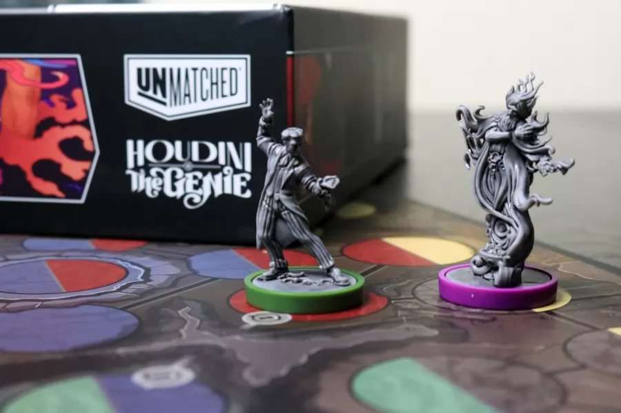 Llega Unmatched Houdini VS El Genio, nueva expansión autojugable para el juego de mesa con miniaturas de los combates imposibles. Añade a estos dos contendientes a tu colección y enfréntalos sobre el campo de batalla a otros héroes y heroínas de renombre como Medusa, Drácula, Robin Hood, Caperucita Roja o Alicia recién regresada del País de las Maravillas.