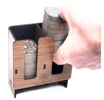 Tiene capacidad para aproximadamente 90 losetas, ideal para Carcassonne con 1 o 2 expansiones o Nova Luna.
