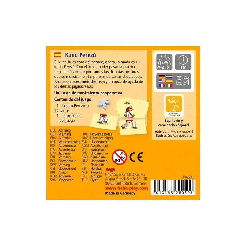 El kung-fu es cosa del pasado; ahora, la moda es el Kung Perezú. Con el fin de poder pasar la prueba final, los ninos/as deben imitar por turnos las distintas posturas que se muestran en las cartas destapadas. Para ello, necesitarán destreza y un poco de ayuda de los demás jugadores/as.