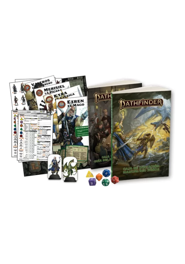 ¡Deja atrás lo mundano y da tu primer paso en un mundo de aventuras fantásticas con la Caja de Iniciación Pathfinder! Esta caja contiene todo lo que necesitas para aprender a jugar al juego de rol Pathfinder, incluyendo reglas para crear tu propio héroe de fantasía y herramientas para contar tus propias historias increíbles. ¿Serás un valiente luchador que se lanza de cabeza a la batalla, o un astuto pícaro que ataca silenciosamente desde las sombras? Tal vez serás un experto mago, capaz de manipular increíbles conjuros arcanos o un clérigo sabio y piadoso, que utiliza el poder de su dios para mejorar el mundo.