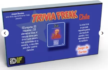 Trivias de Chile hay por montones. Pero ¿Cuál es la gracia de enterarse del campeón del presidente que precedió a González Videla si en cambio puedes aprender sobre el que procuraba salir siempre rosadito en las fotos de prensa? ¿Para qué enfrascarse por la capital de la Provincia del Choapa si puedes hacerlo por la metida de pata de Gabriela Mistral en el Nobel? Para trivias a secas están las enciclopedias. Para la diversión están las trivias freak.