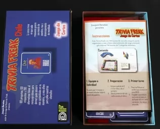 Trivia Freak Chile contiene 100 preguntas. Cada una incluye tres alternativas, todas difíciles de tragar pero una —usted me tiene que estar bromeando, licenciado— cierta. Las otras dos, como para cuestionarte de cuál fumaba la imaginación galopante que las inventó. Hay además algunas alternativas cazabobos. También preguntas que dan la opción a quien las lea de inventar una alternativa falsa sobre la marcha, esfuerzo creativo que es enjundiosamente recompensado si algún rival la escoge.