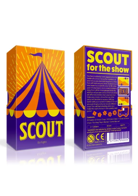 SCOUT es un juego de ascenso de escaleras en el que las cartas tienen dos valores potenciales, los jugadores no pueden reorganizar su mano de cartas y los jugadores pueden pasar su turno para tomar una carta del conjunto más alto de cartas actual en su mano.
