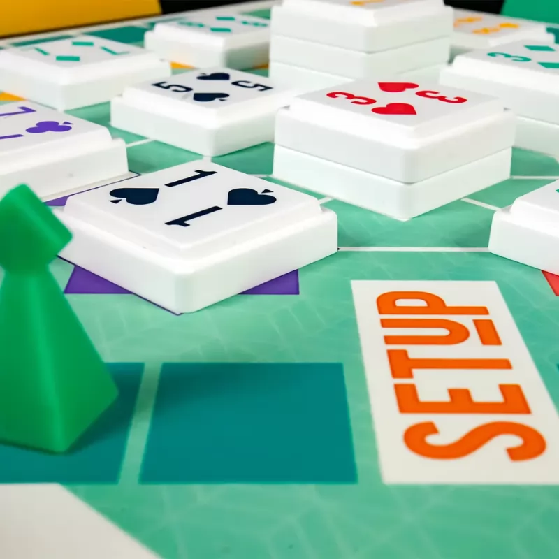 El objetivo de SETUP es formar grupos de fichas en el tablero de juego. Cuantas más fichas incluyas en los grupos que crees, más puntos ganarás y más casillas podrás avanzar con tu peón hacia la línea de meta. La persona que primero llegue a la meta ¡gana la partida!