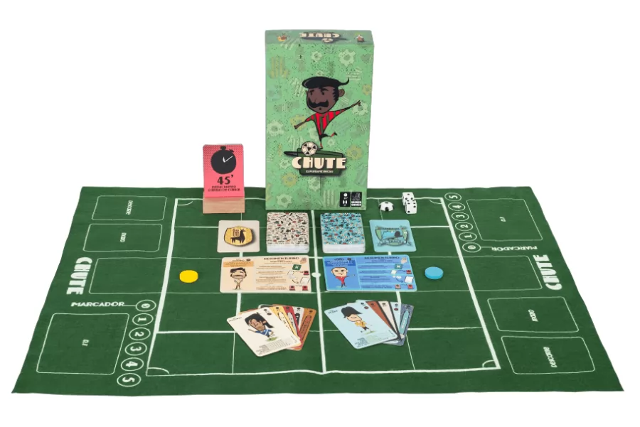 Chute es un juego de mesa para dos jugadores de aproximadamente 25 minutos de duración, el cual cuenta con dos equipos conformados por distintos jugadores del “Chutemundo”, mundo ficticio conformado por distintas regiones que compiten entre sí por la gloria a través del fútbol.