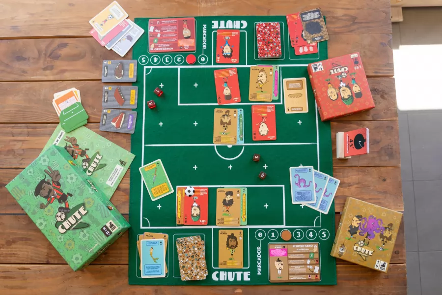 Chute es un juego de mesa para dos jugadores de aproximadamente 25 minutos de duración, el cual cuenta con dos equipos conformados por distintos jugadores del “Chutemundo”, mundo ficticio conformado por distintas regiones que compiten entre sí por la gloria a través del fútbol.