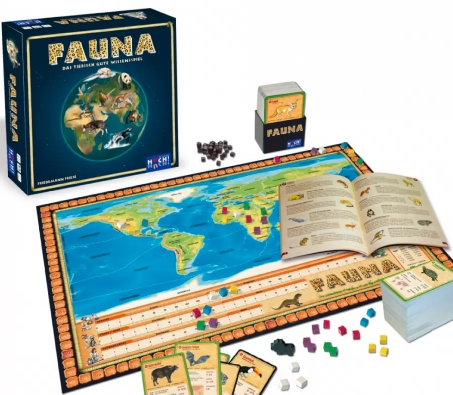 "¿Sabías que la jirafa puede llegar a medir más de 5 metros de altura y que el yacaré negro pesa unos 60 kilos? ¿Y sabrías decir cuánto mide la cola de un oso polar o dónde vive el botón de oro? En FAUNA los jugadores tendrán que vérselas con éstas y muchas más preguntas. Aunque, a decir verdad, nadie puede saberlo todo acerca de 360 animales que van por tierra, mar o aire. Así que también se conceden puntos si las respuestas son lo suficientemente aproximadas. Pero cuidado: ¡si arriesgas demasiado, puede que al final te quedes sin fichas! Incluye un libro de 72 páginas con curiosidades de los animales."