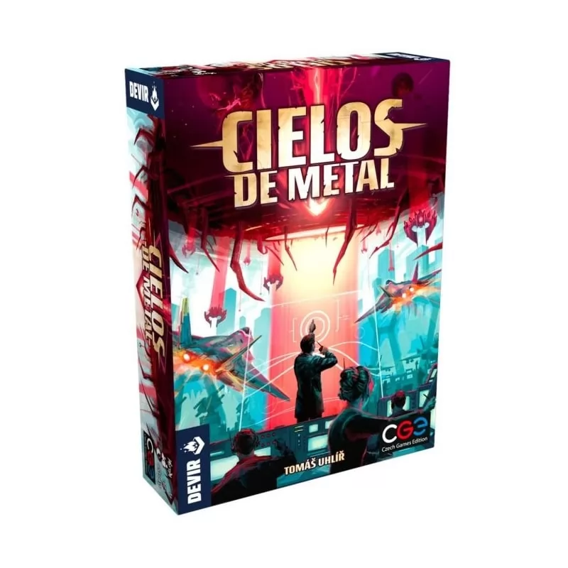 En Cielos de Metal, los alienígenas han venido para conquistar la Tierra. Las naves extraterrestres llenan los cielos y la gente del mundo entero tiene que retirarse a unas bases subterráneas con la esperanza de desarrollar un arma que les ayude a detener a los invasores. Consigue un poco más de tiempo derribando las naves enemigas y excava en el subsuelo para ampliar las capacidades de tu base. En este juego en solitario, cada acción que realices hará que las naves enemigas se acerquen aún más a la ciudad que intentas proteger. Cuanto mayor sea el valor del dado, más rápido descenderán las naves. Pero si tomas las decisiones correctas en el momento adecuado, puede que logres salvar a la humanidad. Componentes 5 naves rojas 4 naves blancas 3 fichas de plástico 7 dados 1 excavadora 1 nave nodriza 4 piezas de cielo 3 piezas de base 3 piezas de ciudad 1 cuaderno de campaña 4 hojas en formato comic 14 ciudades adicionales 12 personajes potenciables 13 escenarios únicos 9 piezas de cielo y bases adicionales fichas para los escenarios 1 nave naranja especial Reglas de Juego